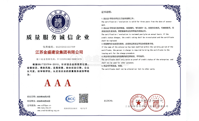 3A級(jí)資信等級(jí)證書